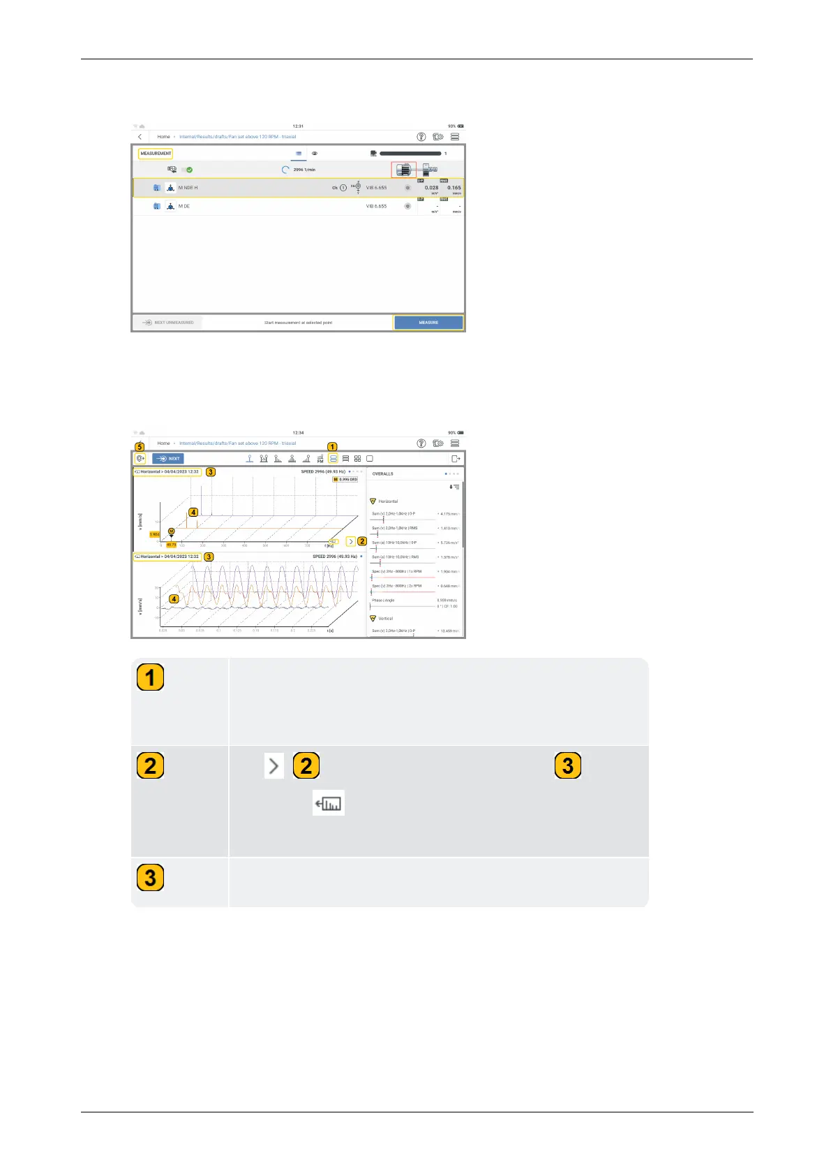 In the measurement screen, select the triaxial sensor measure location.