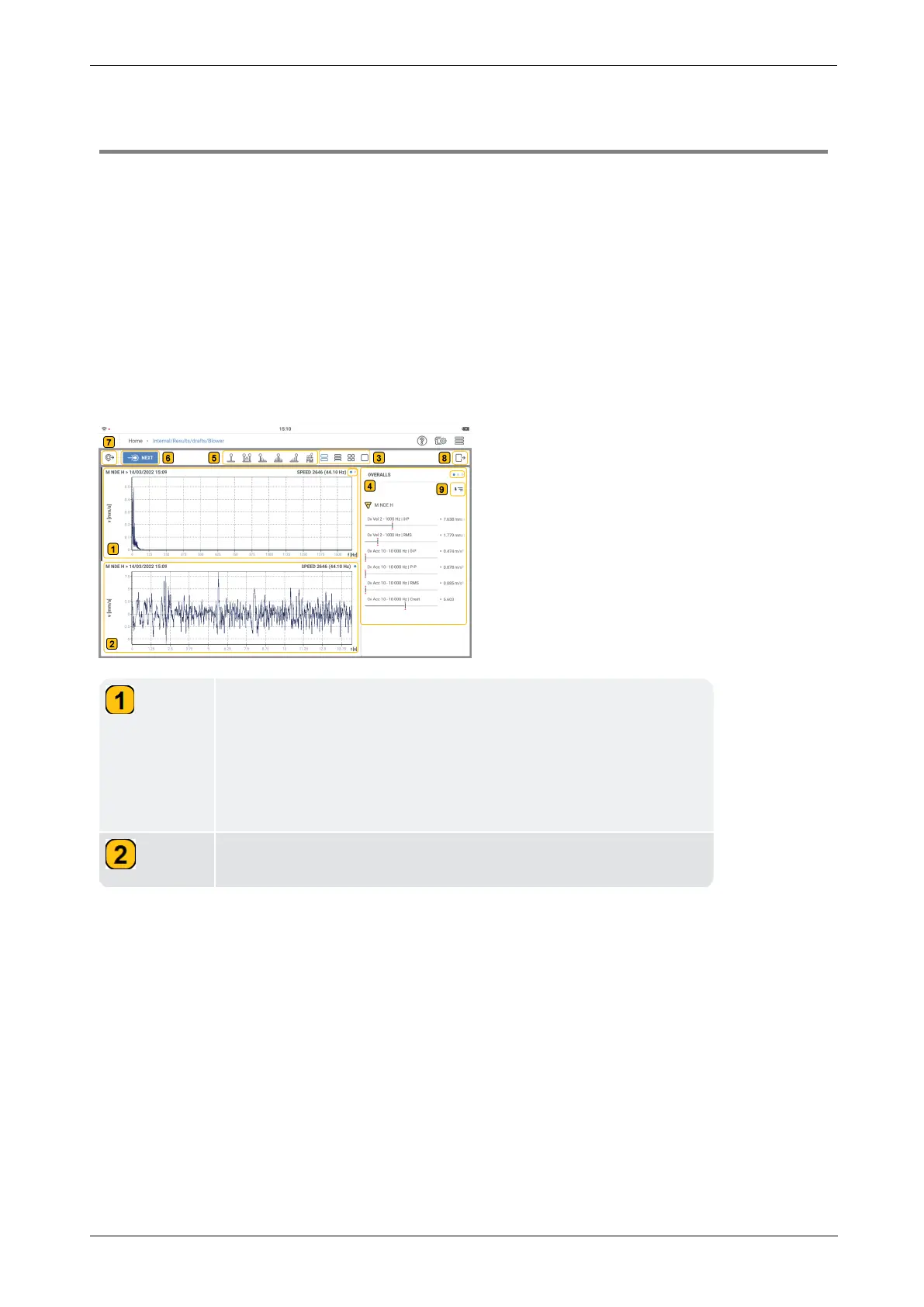 spectrum and order-based spectrum. Overall values can be shown in any of the of these vibra-