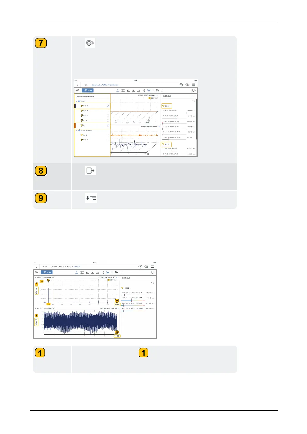 Tap the parameter label ( ) to toggle the vibration spectrum