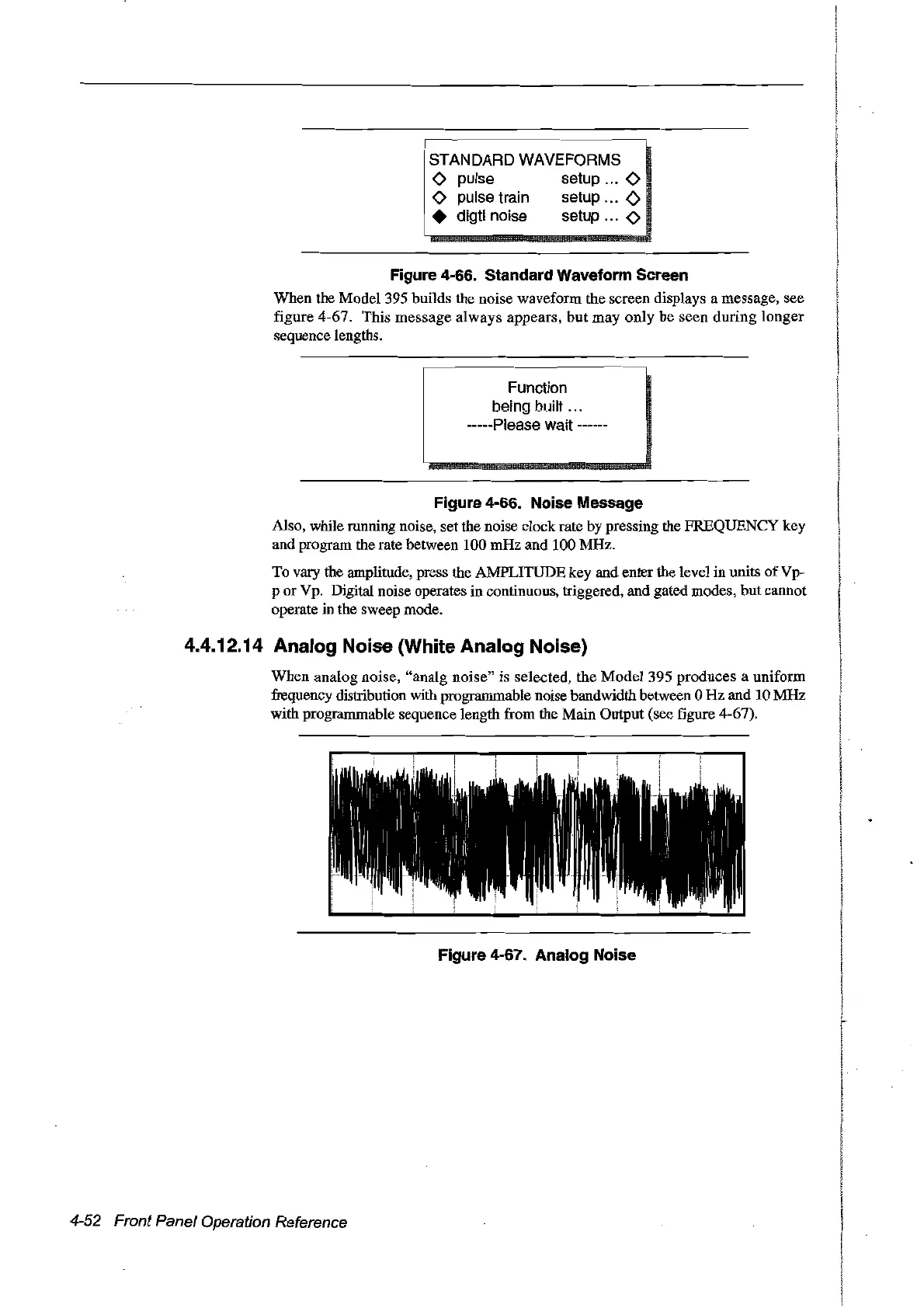 When the Model 395 builds the noise waveform the screen displays a message, see