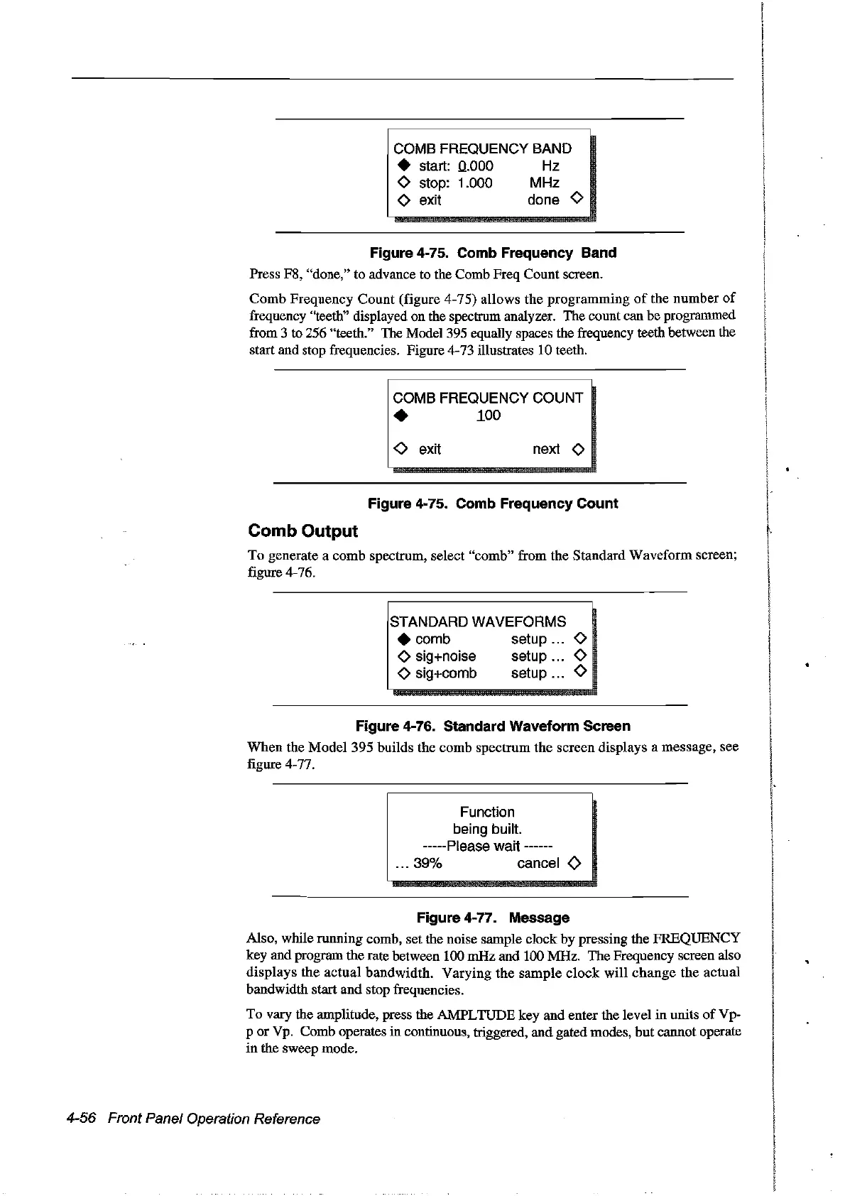the Model 395 builds the comb spectrum the screen displays a message, see