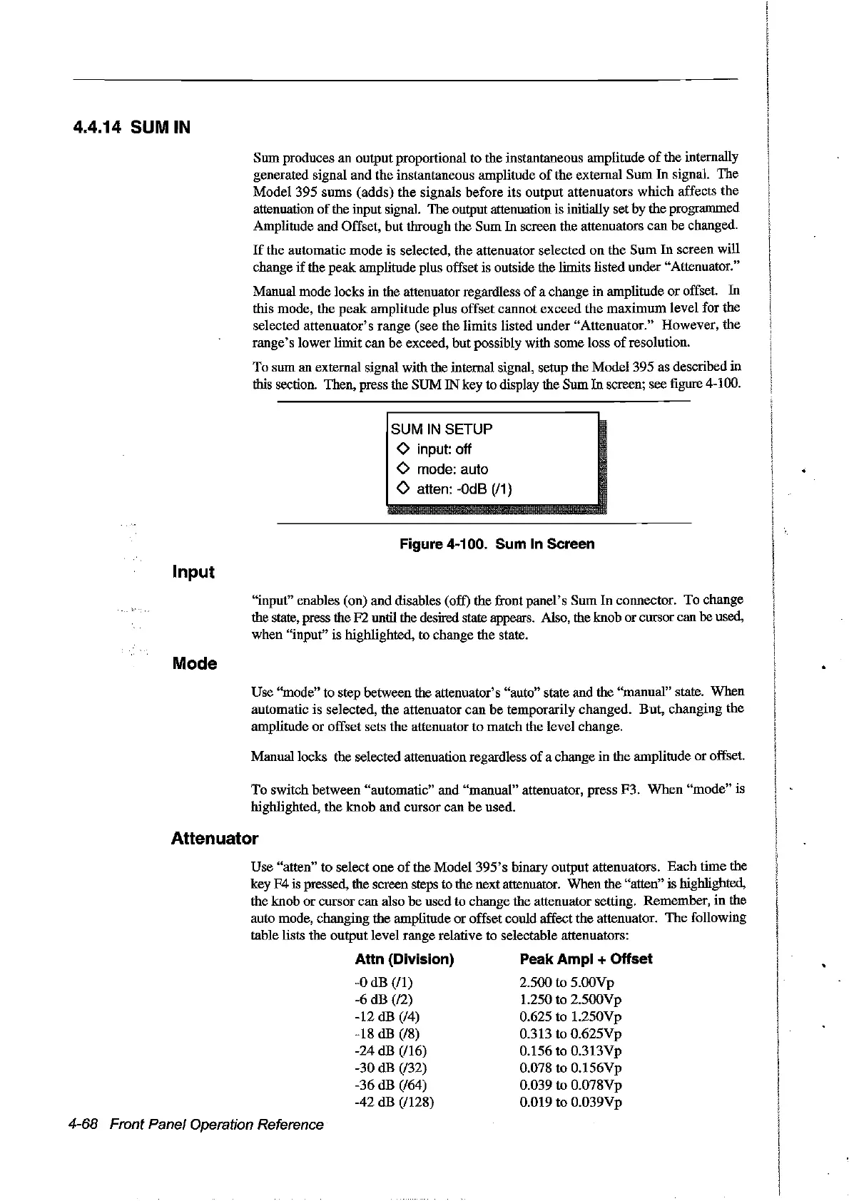 To sum an external signal with the internal signal, setup the Model 395 as described in