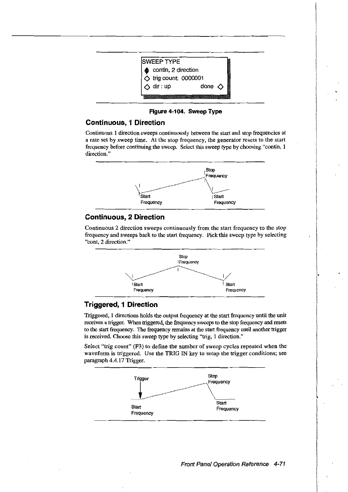 Continuous 1 direction sweeps continuously between the start and stop frequencies at