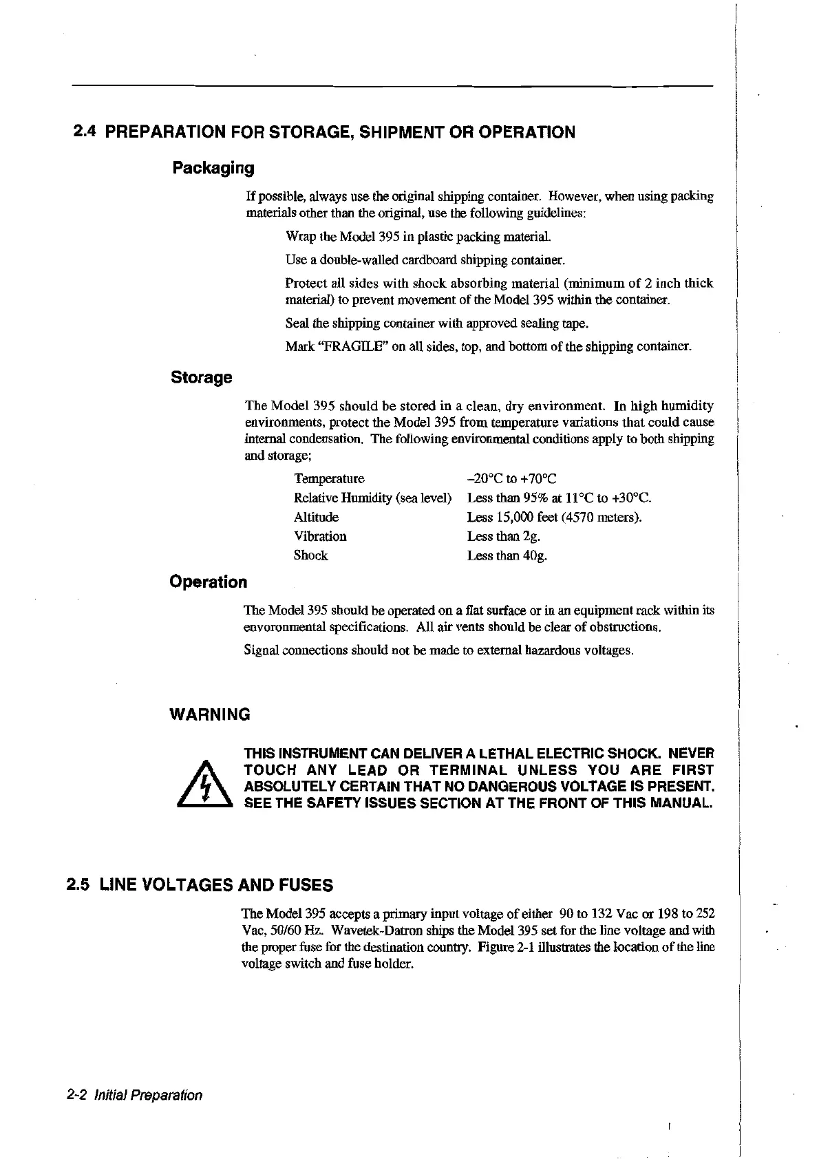2.4 PREPARATION FOR STORAGE, SHIPMENT OR OPERATION