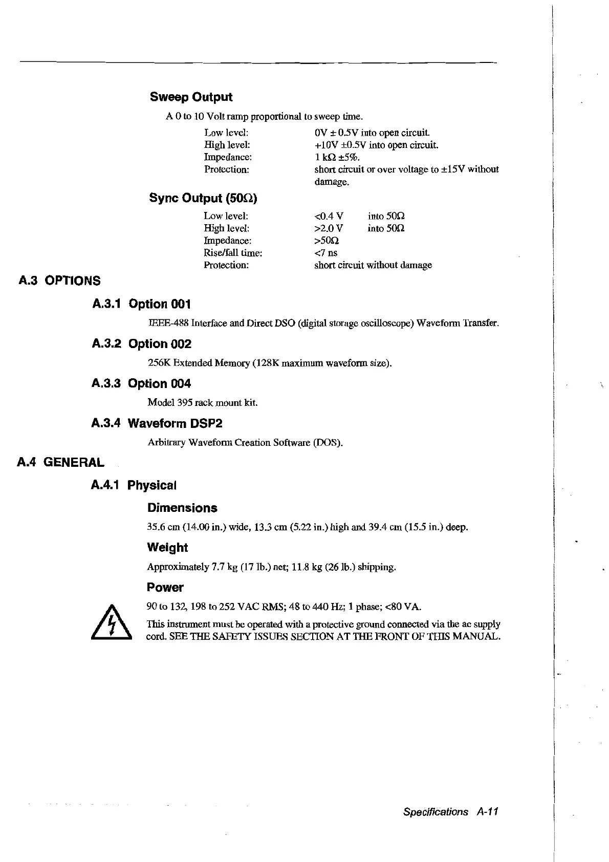 Specifications A-11