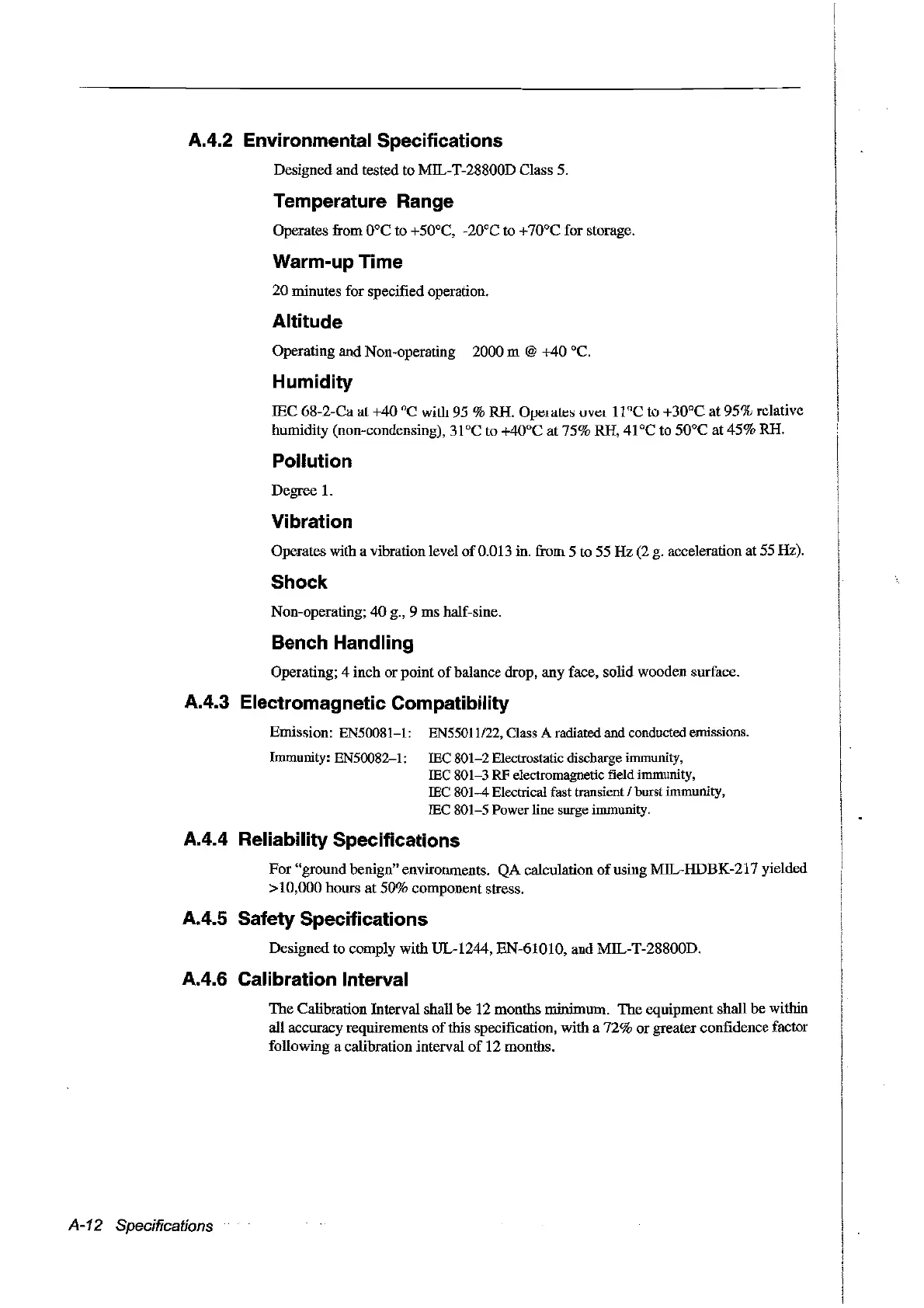 A.4.2 Environmental Specifications