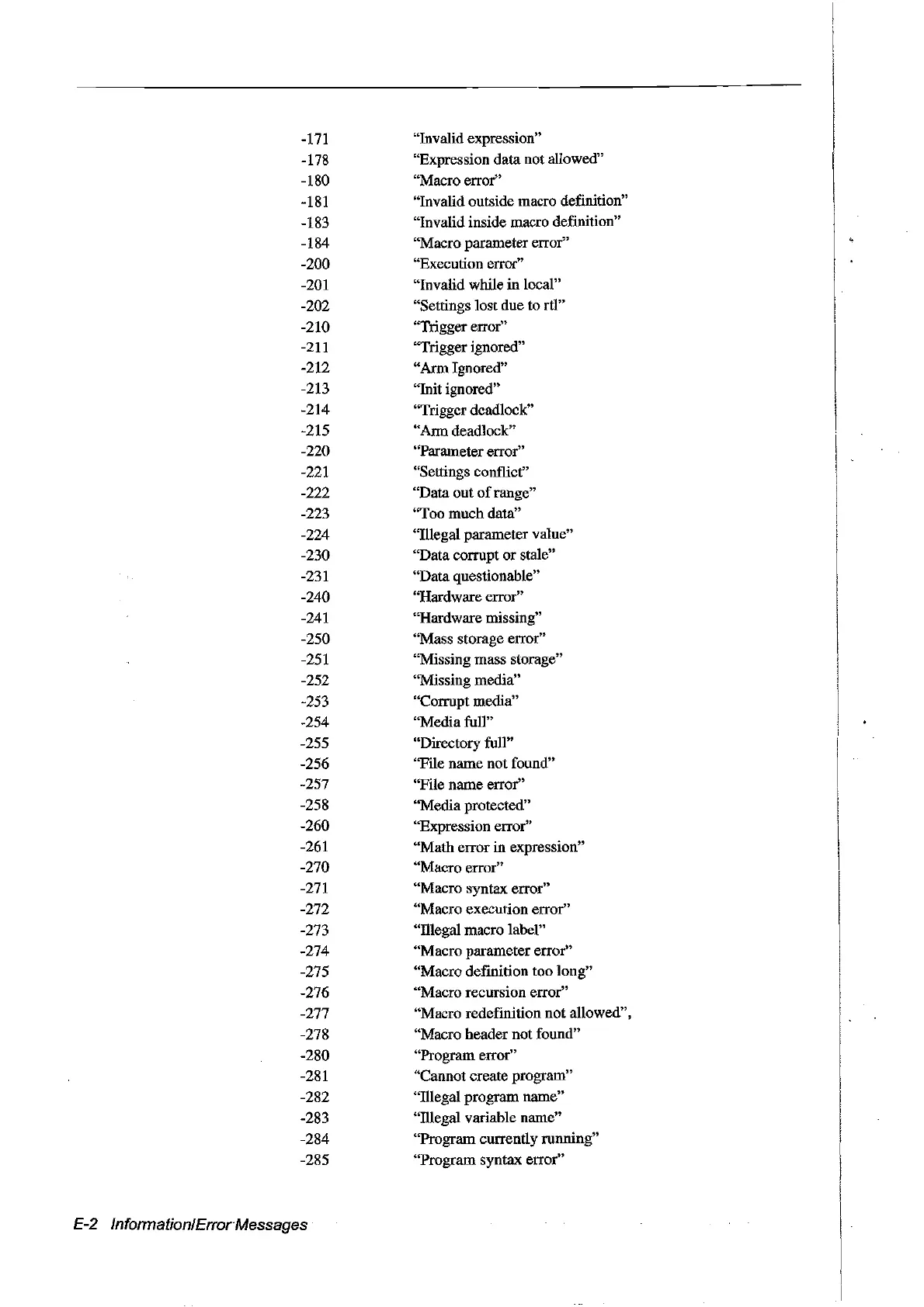 E-2 InformationJErrorMessages