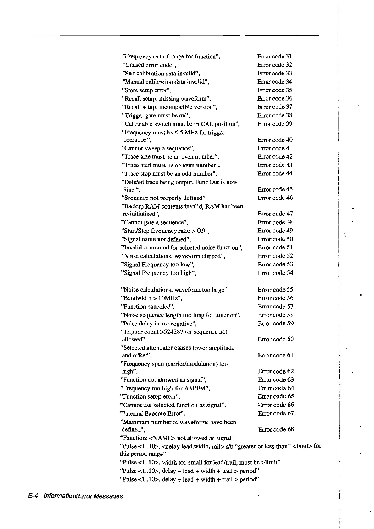 E-4 Information/Error Messages