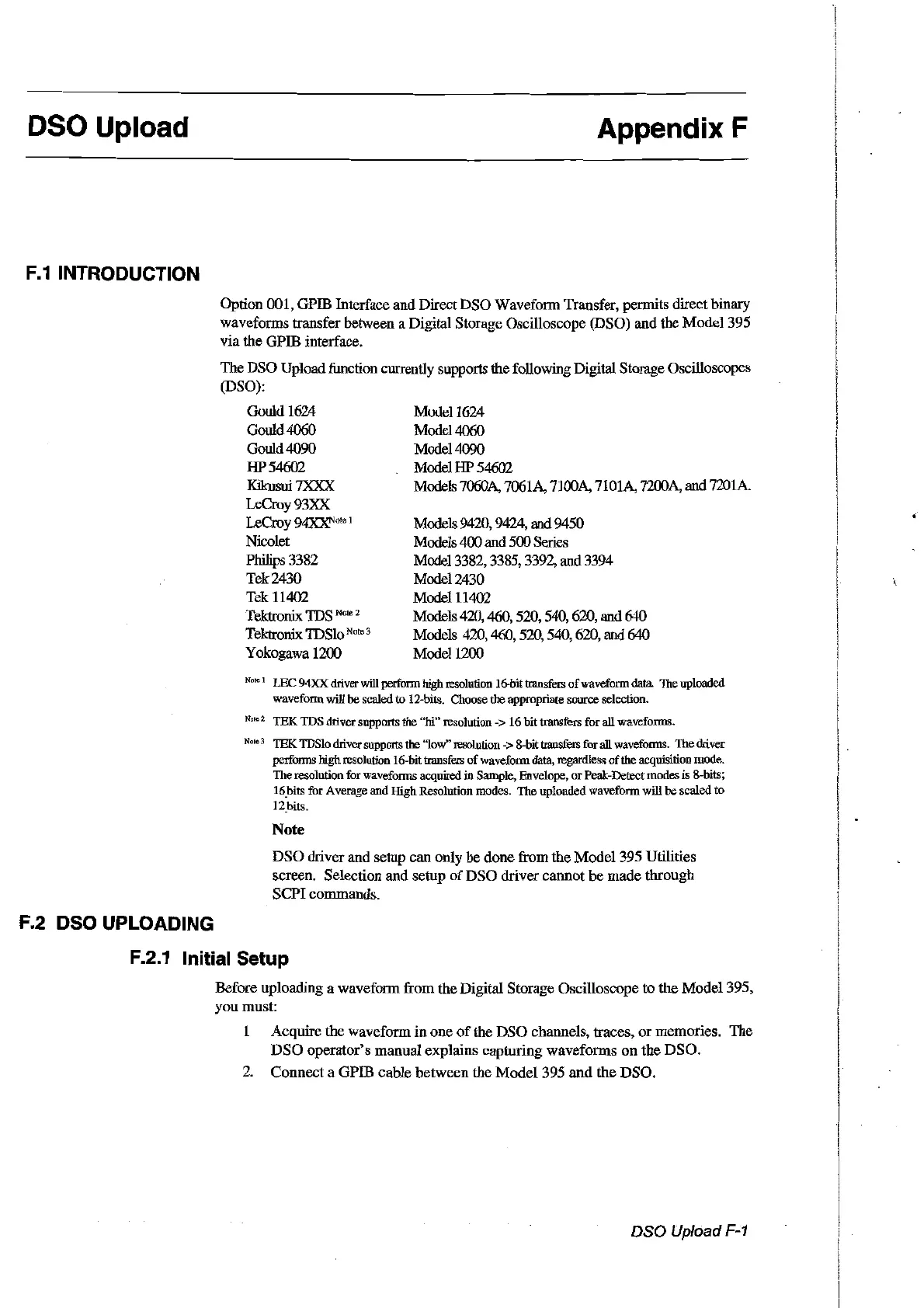 DSO driver and setup can only be done from the Model 395 Utilities