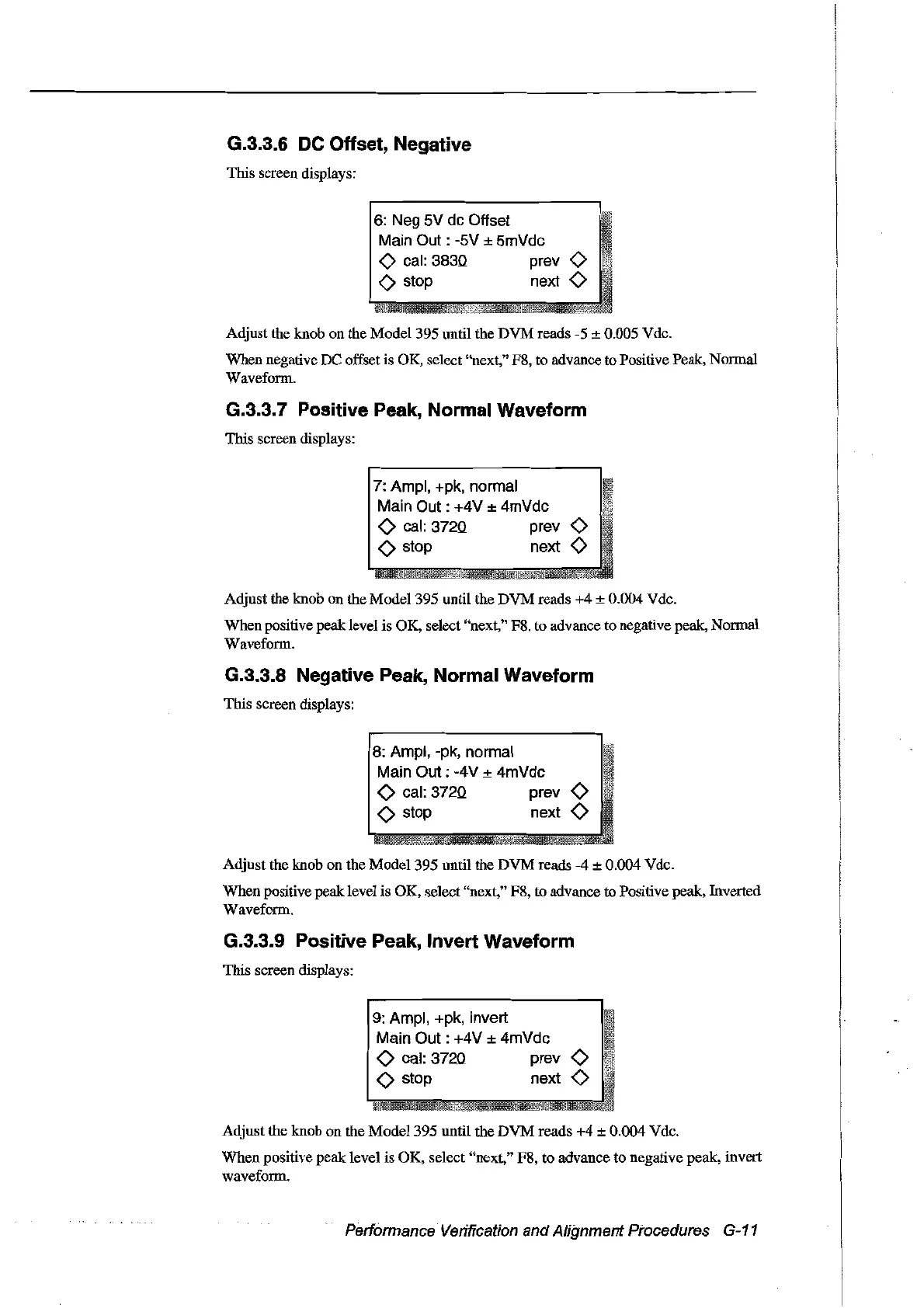 When positive peak level is OK, select "next," F8, to advance to negative peak, Normal