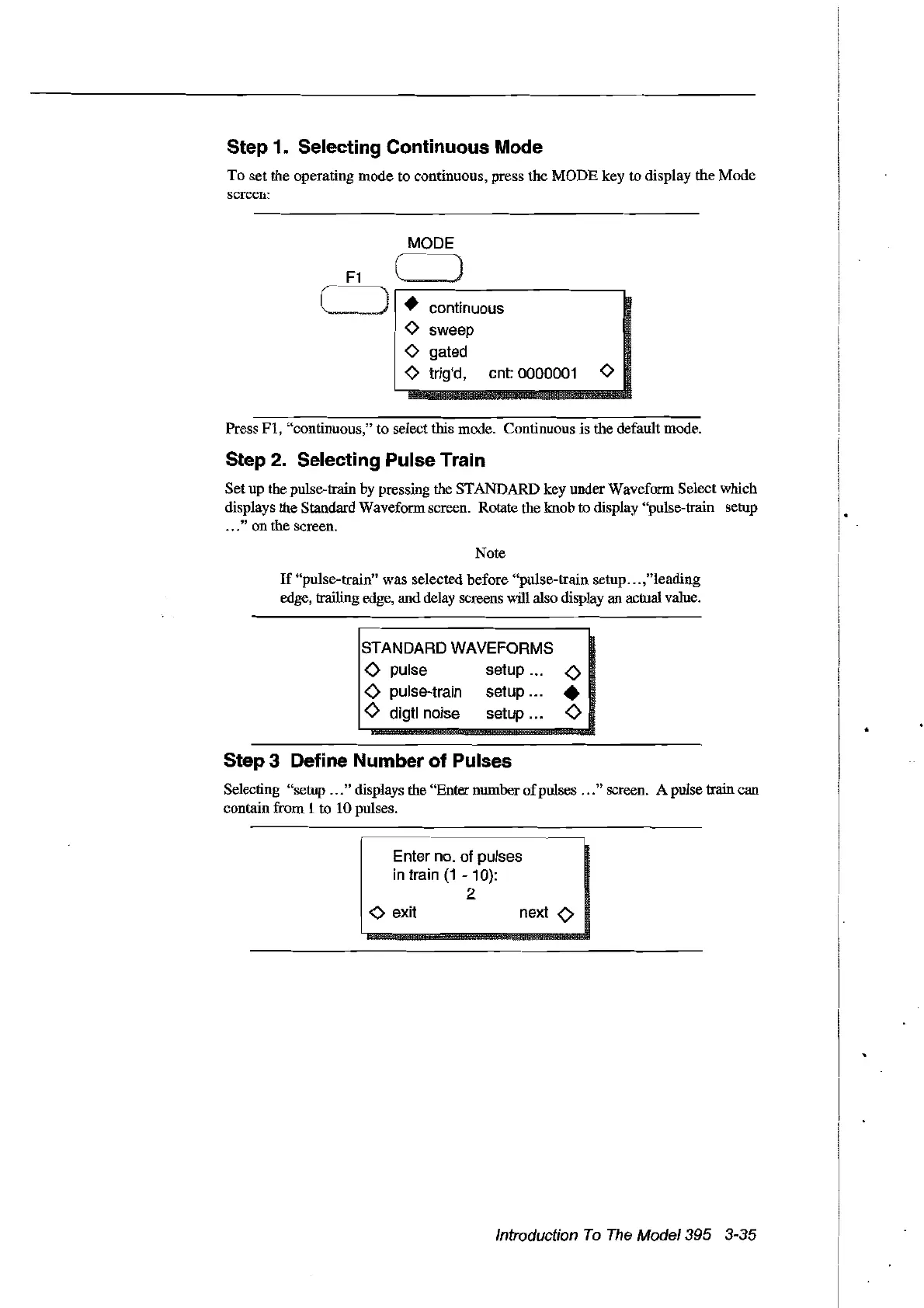 Set up the pulse-train by pressing the STANDARD key under Waveform Select which