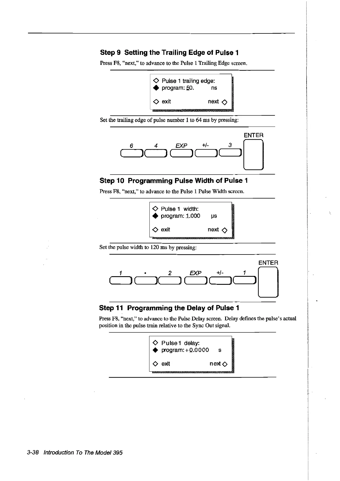 Press F8, "next," to advanee to the Pulse Delay sereen. Delay defines the pulse's aetual
