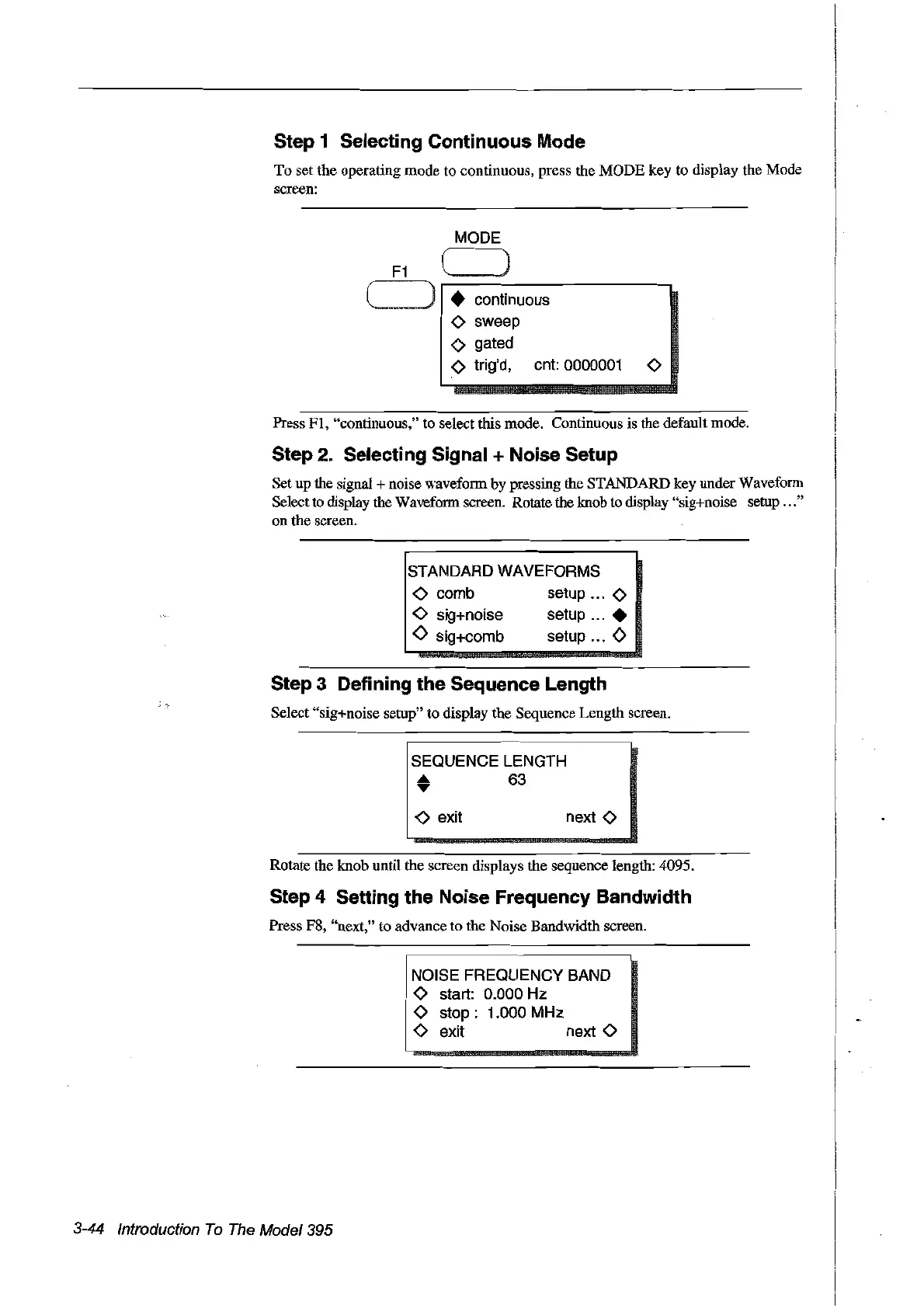 Press F8, "next," to advanee to the Noise Bandwidth sereen.