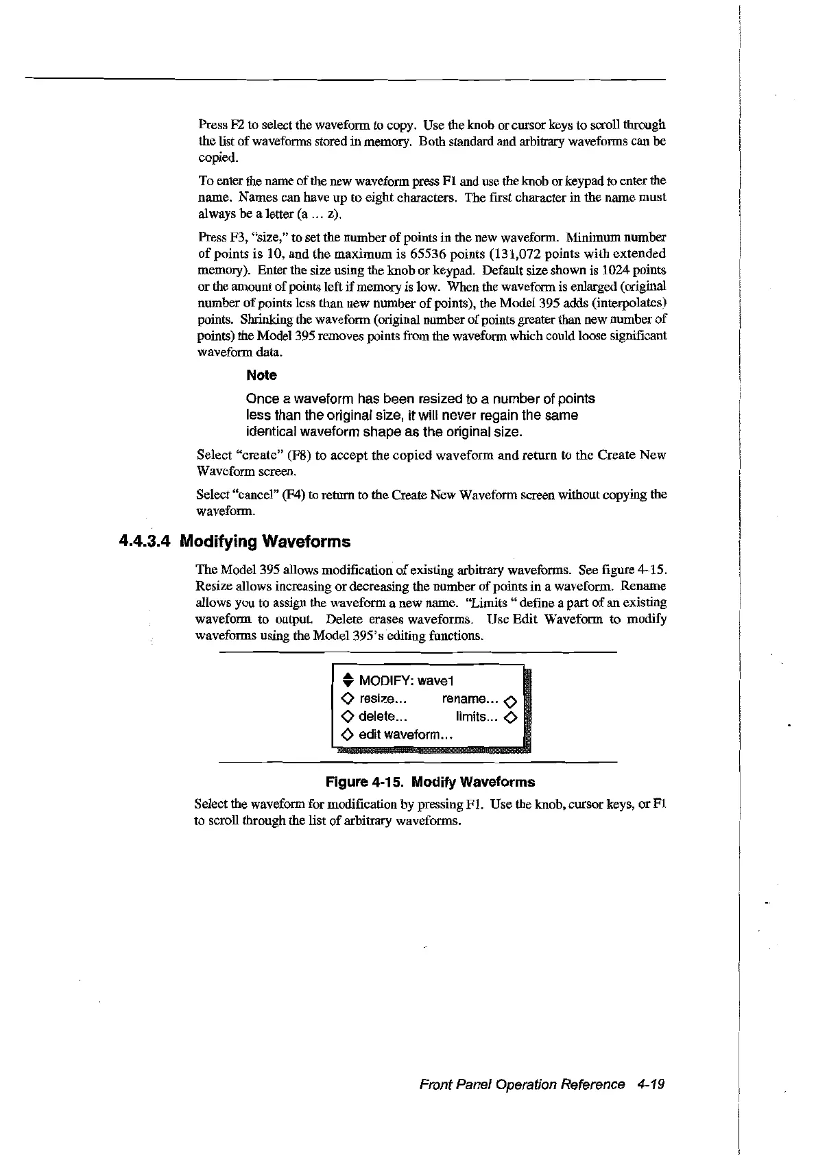 Select "cancel" (F4) to return to the Create New Waveform screen without copying the