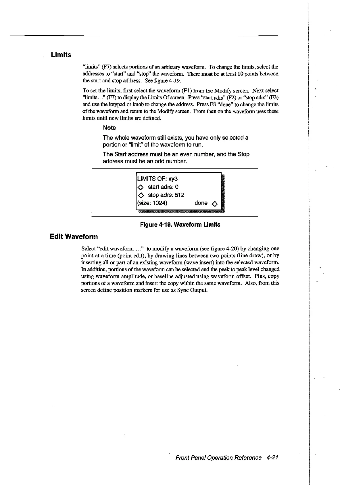 addresses to "start" and "stop" the wavefonn. There must be at least 10 points between