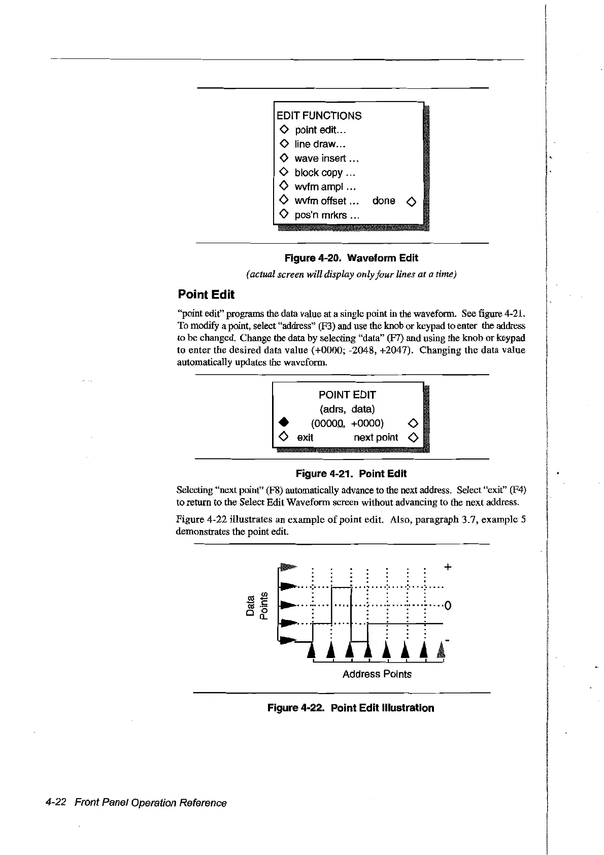 "point edit" programs the data value ata single point in the waveform. See figure 4-21.