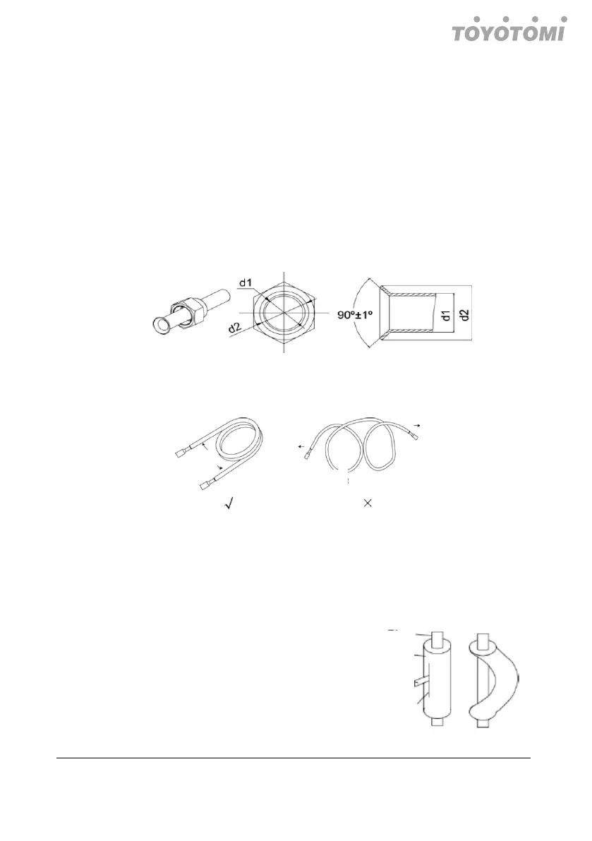 2) Μη λυγίζετε τους σωλήνες υπό γωνία μεγαλύτερη από 90 °.