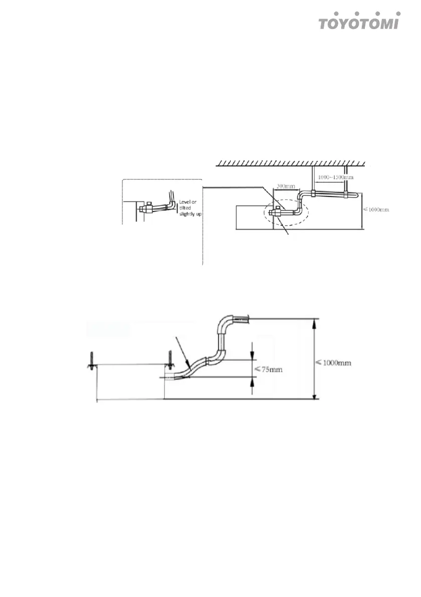Το κατακόρυφο ύψος του σωλήνα αποστράγγισης θα πρέπει να είναι 75 mm ή