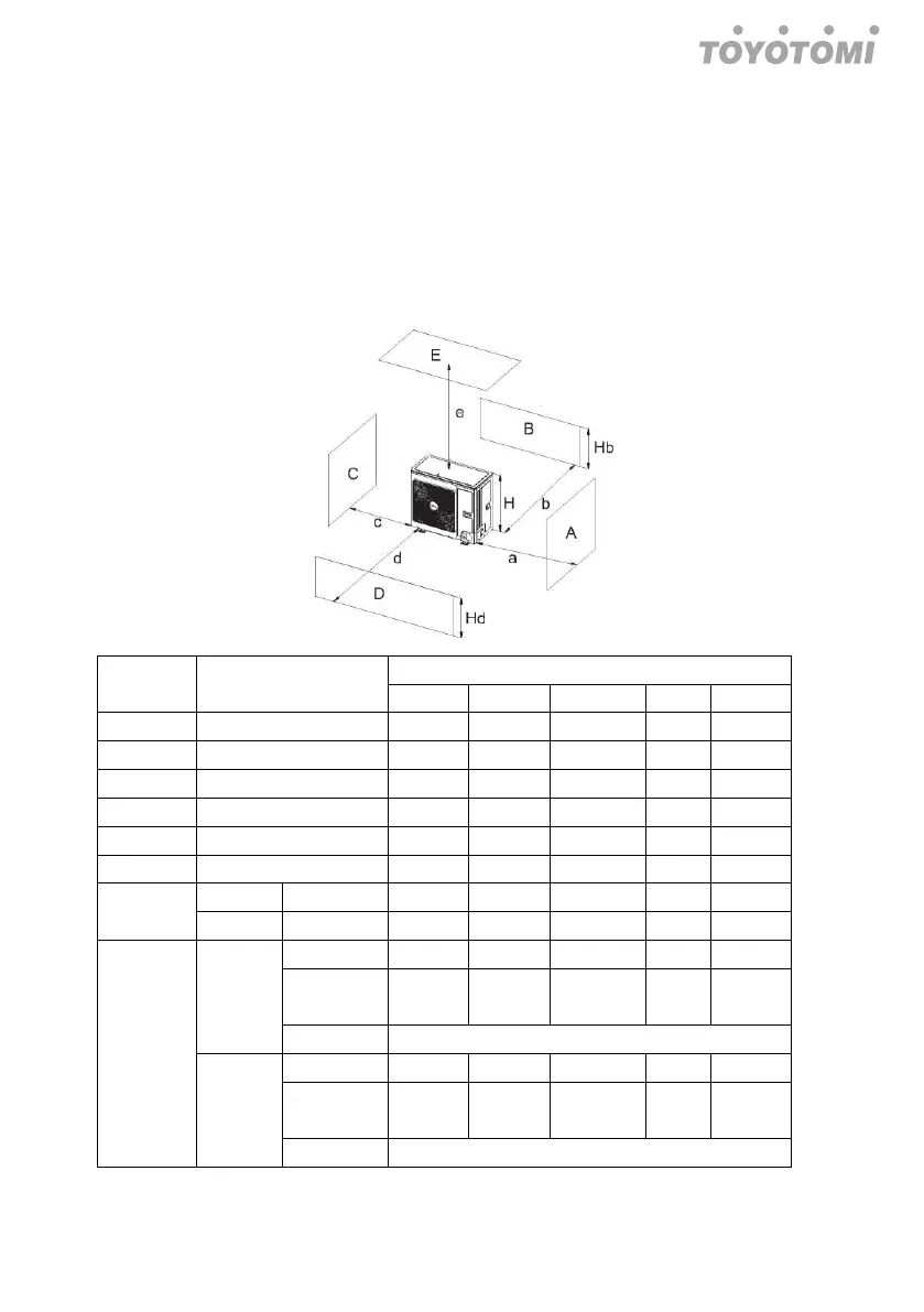 (1) Schema dello spazio di installazione e luogo per l’unità esterna