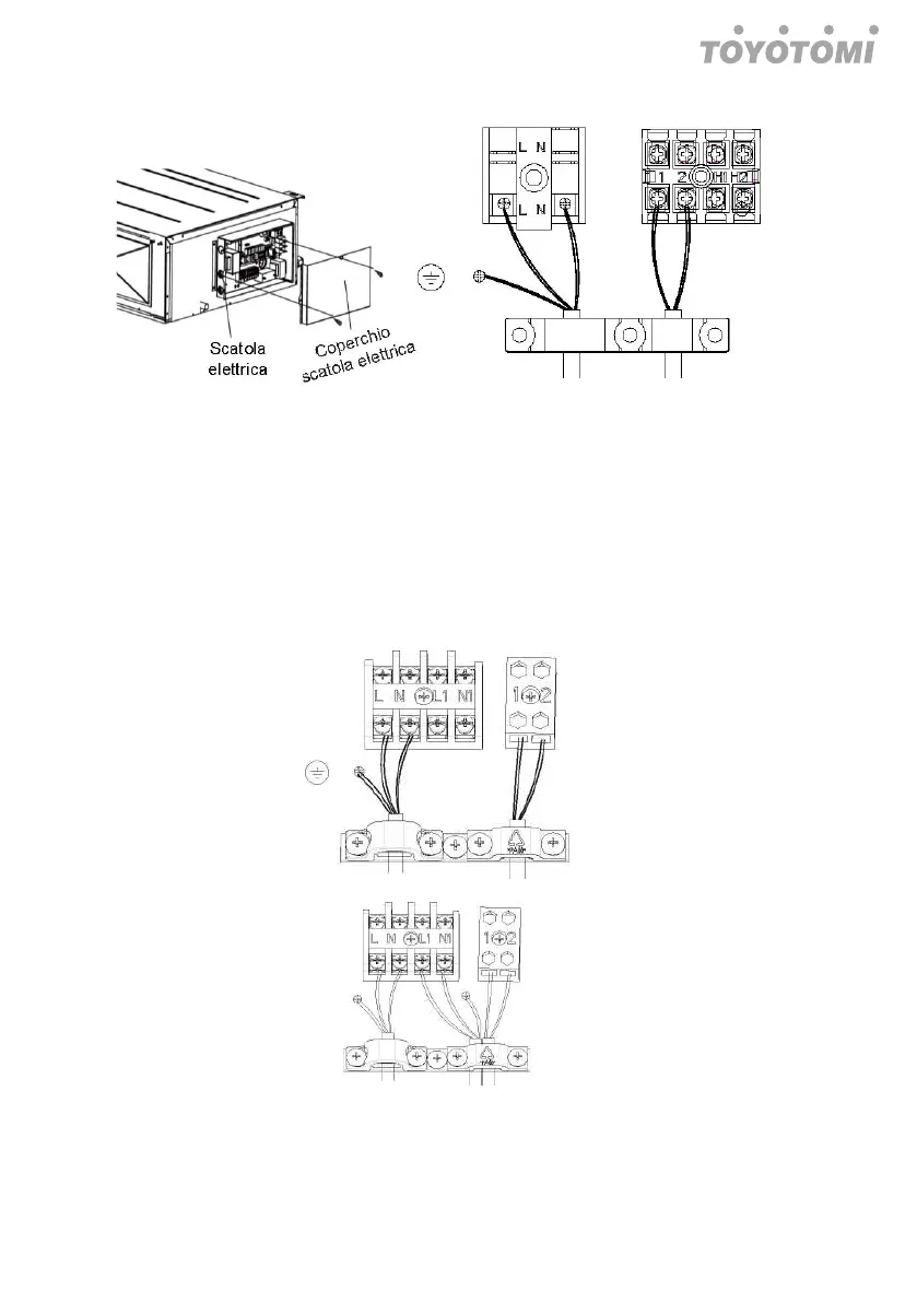 inserire i cavi di comunicazione e il cavo di alimentazione nella morsettiera.