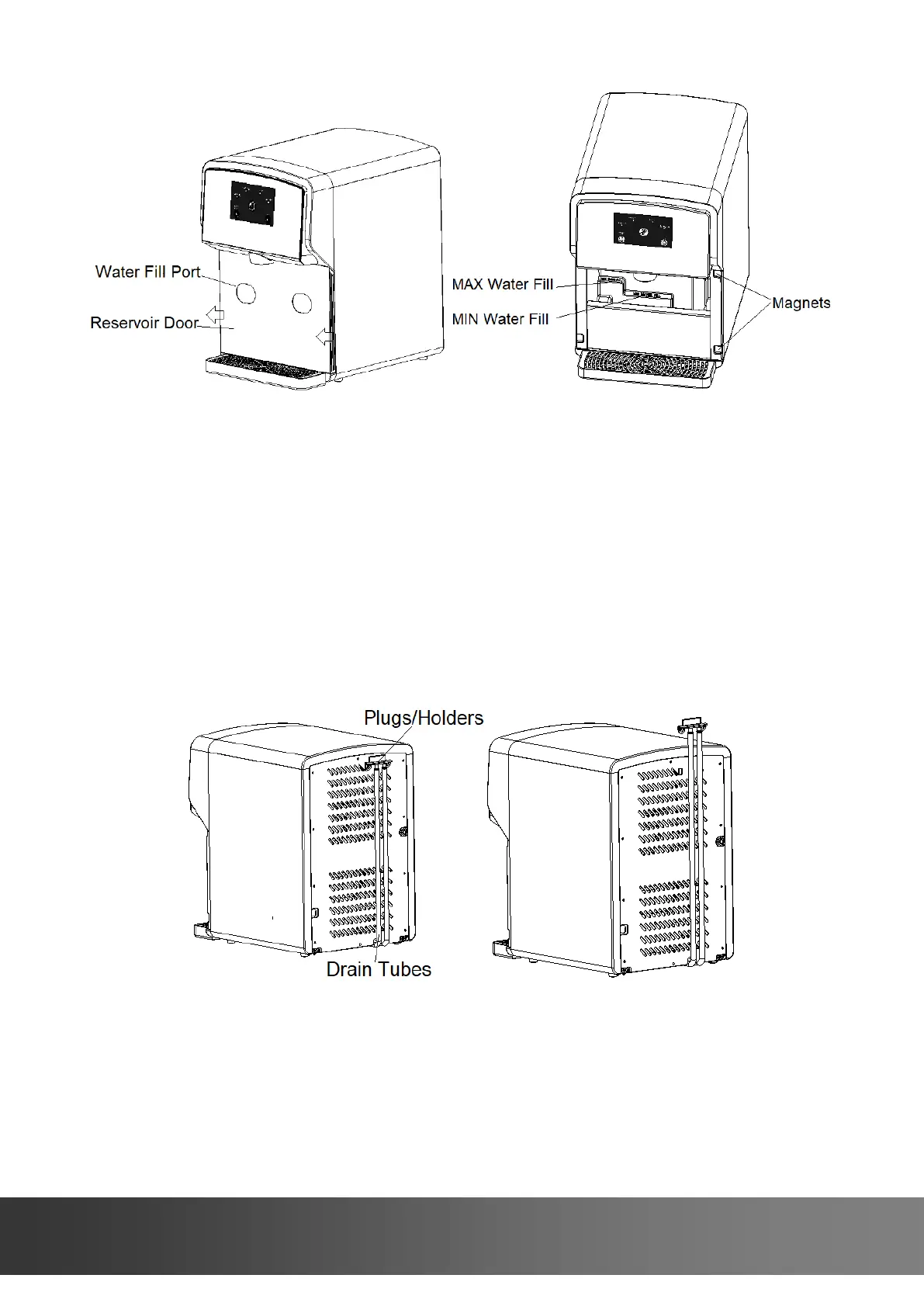 Pull the drain tubes with plugs/holders out of the unit back and lower