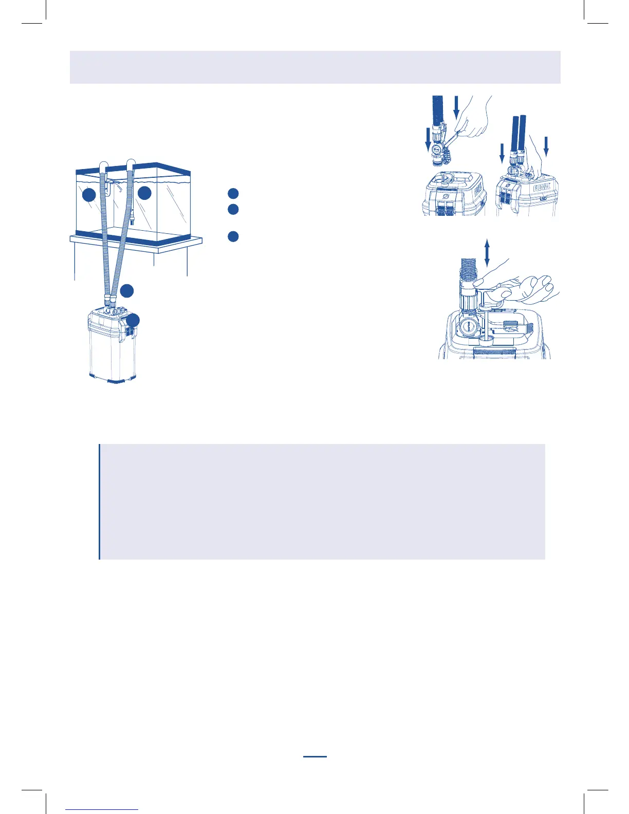 IMPORTANT: To prevent damage, never plug the filter in unless the canister is completely full of water.