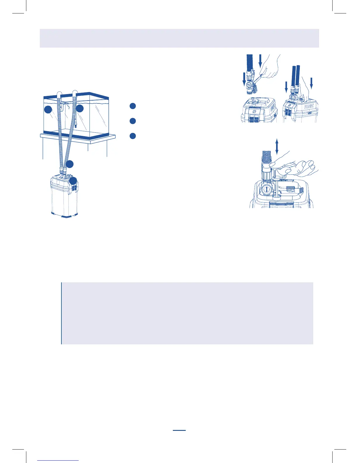 IMPORTANTE: para prevenir danos, nunca ligue o filtro, exceto se a caixa estiver completamente cheia de água.