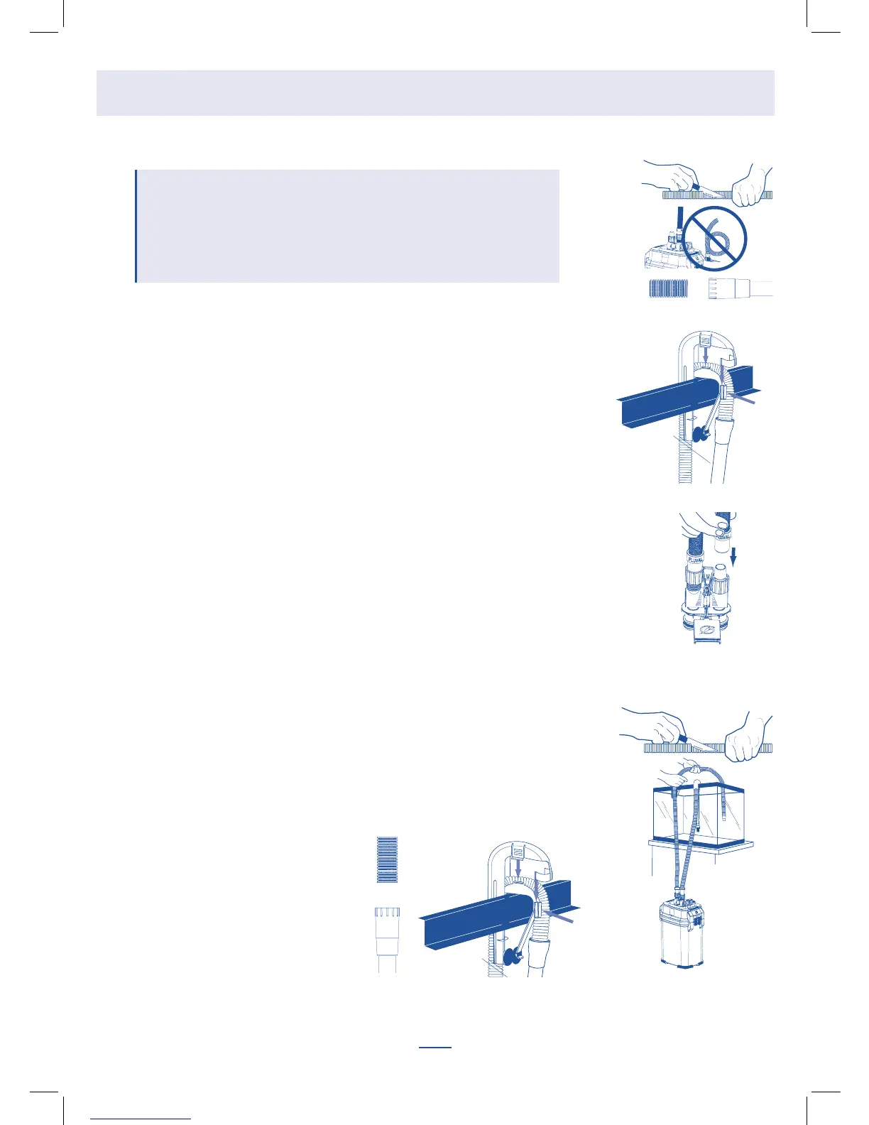 • To ensure a watertight seal, the cut end of the hosing, which connects to the