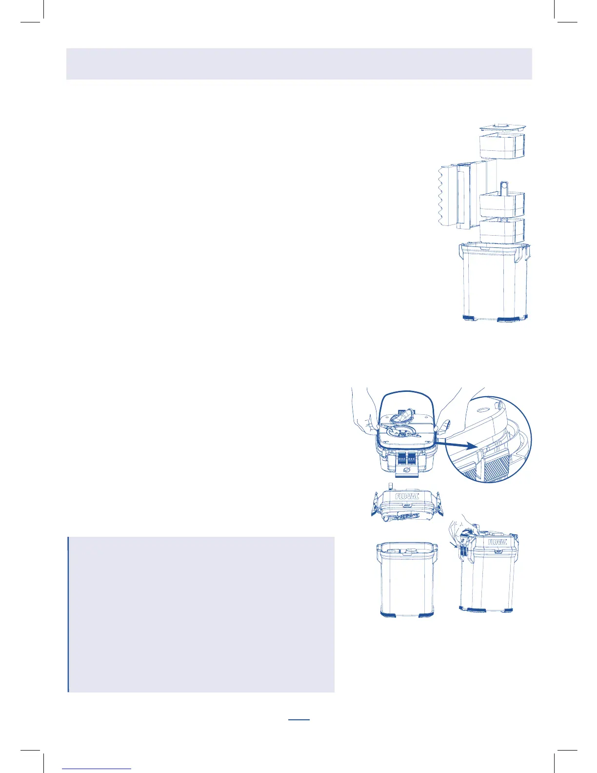 System działa na zasadzie grawitacyjnej. Aby działał prawidłowo, filtr musi