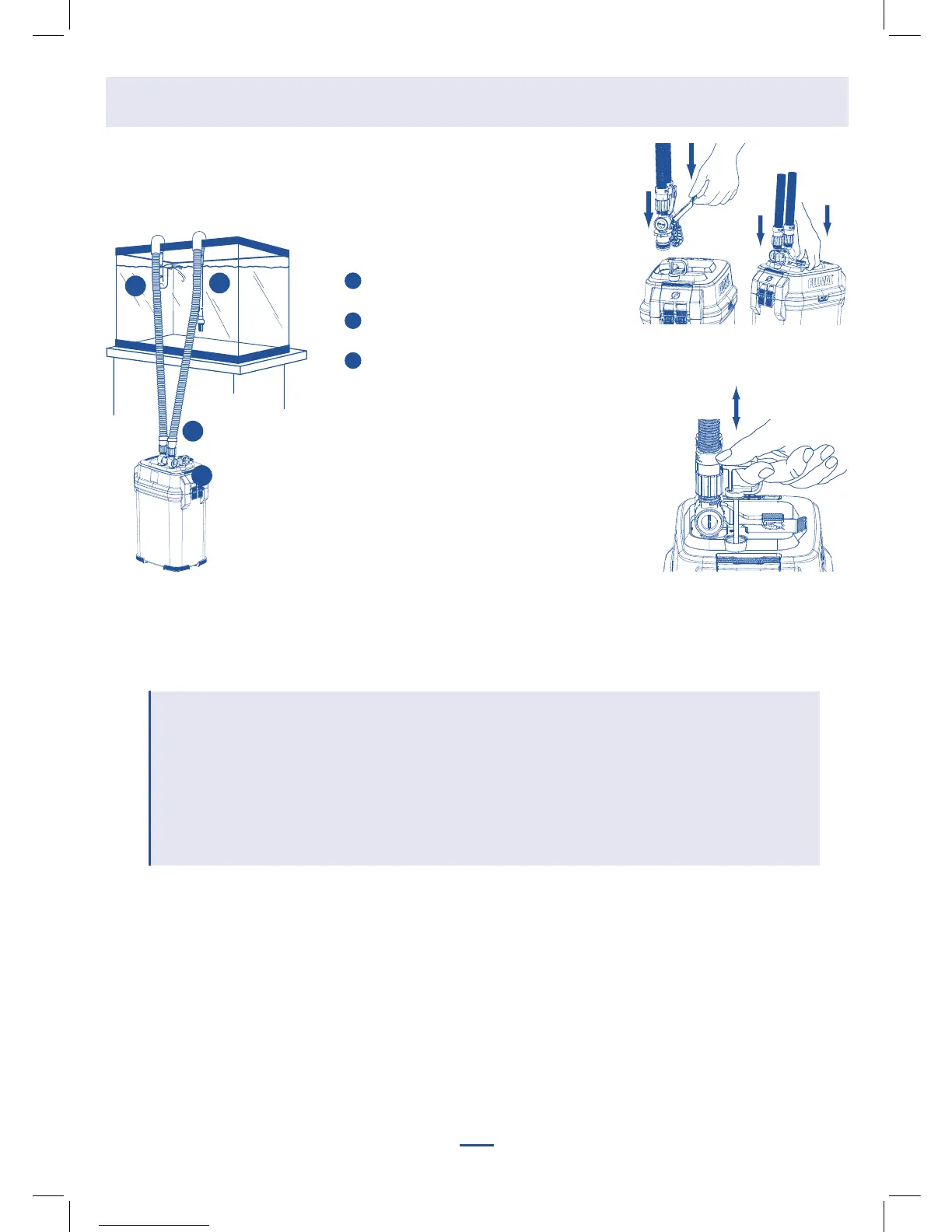 UWAGA: Aby zapobiec uszkodzeniu, nigdy nie podłączaj filtra do zasilania, zanim pojemnik nie jest całkowicie wypełniony wodą.