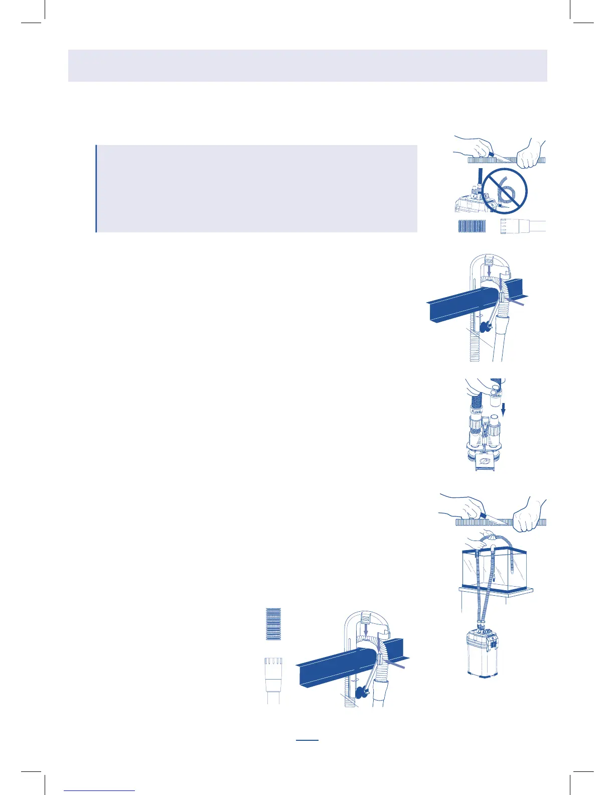 • Le tuyau doit suivre un chemin direct du filtre au rebord de l’aquarium, avec très