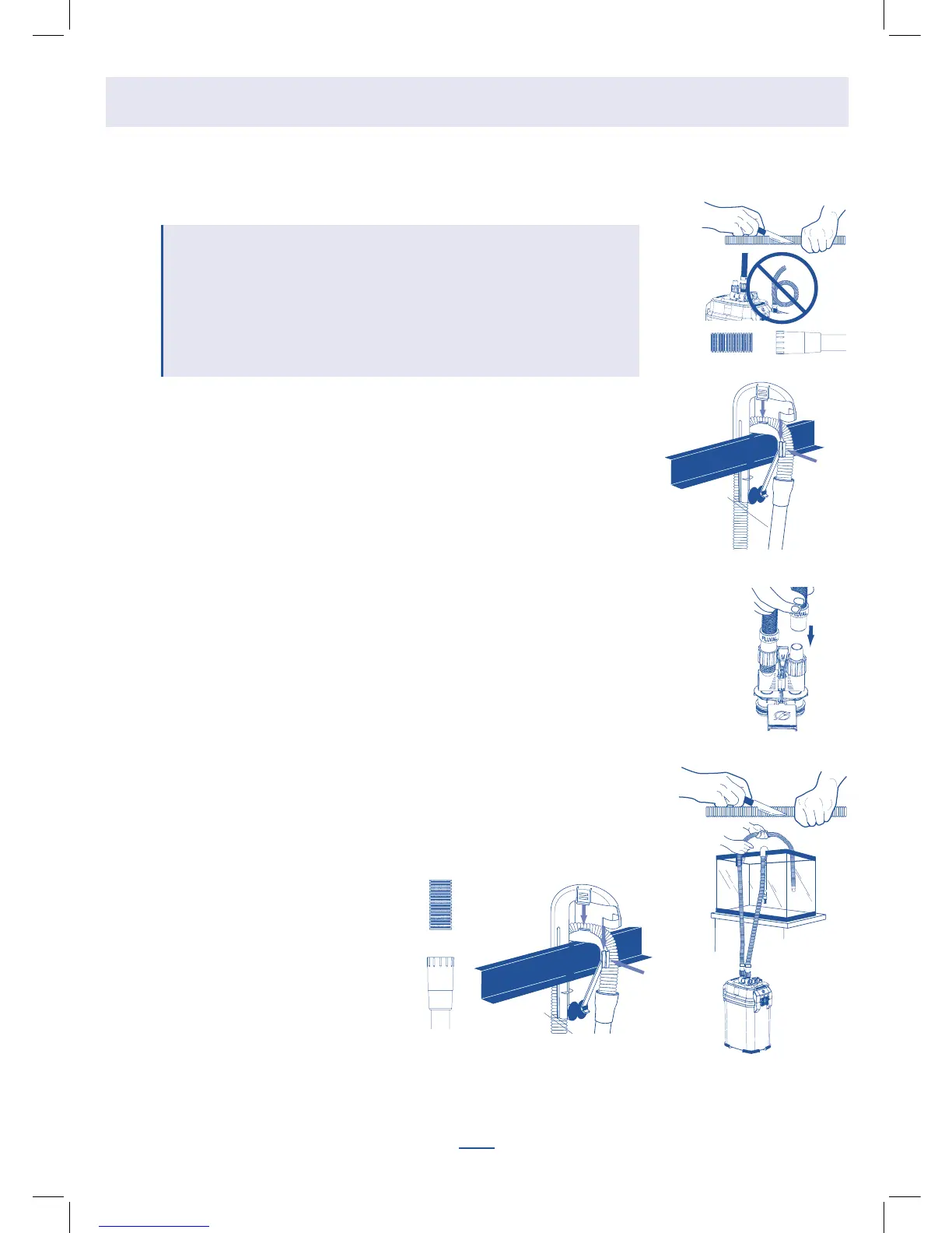 Als de slang te lang is, zal de filter niet goed werken.