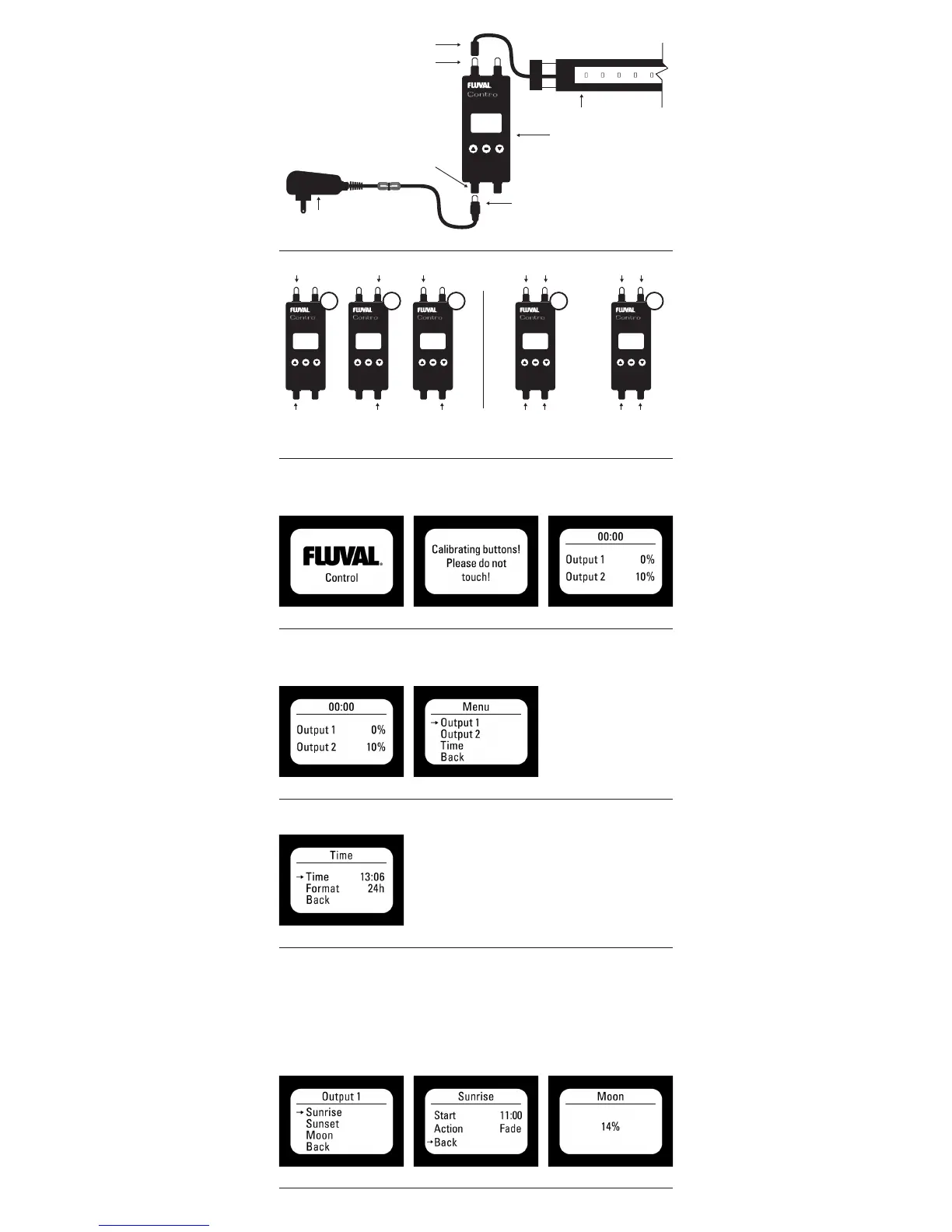 3. MOON: This setting allows you to regulate light intensity between the dusk and dawn cycle. Use the up and