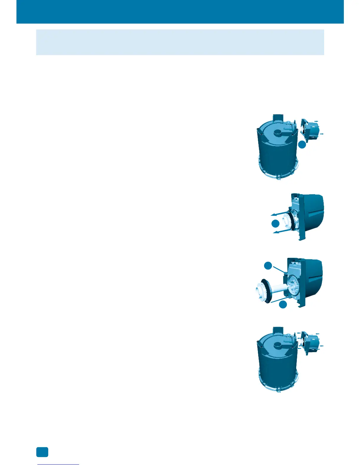 motor. Prior to performing pump care the FX6 Filter must be completely emptied of water, media baskets, and media.