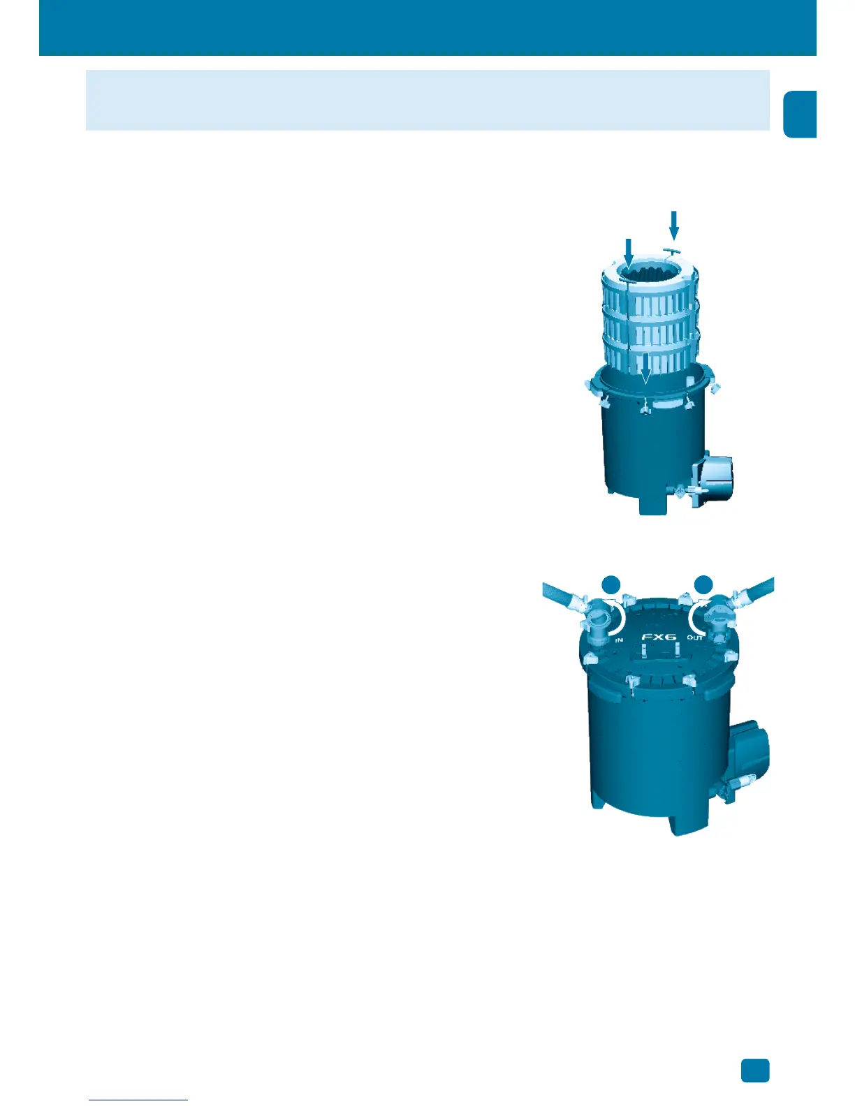 lower the baskets into the filter canister. Foam in upper basket should be just about even with the top edge of