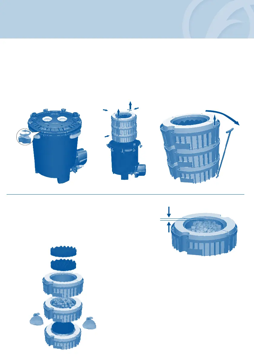 5. Coloque las cestas de medios filtrantes enjuagadas y