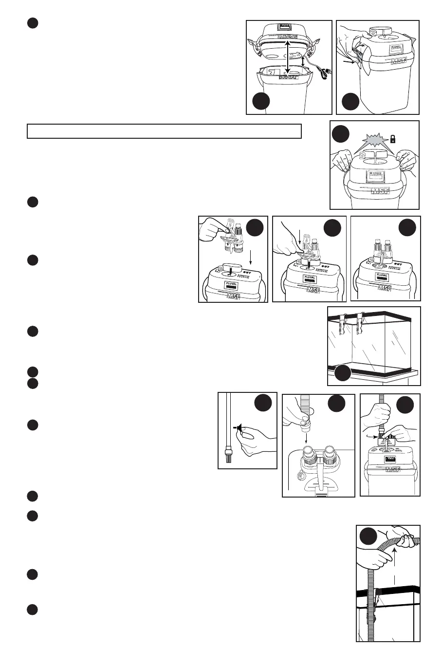 LE FILTRE NE DOIT JAMAIS ÊTRE INSTALLÉ AU-DESSUS DU NIVEAU D’EAU DE L’AQUARIUM.