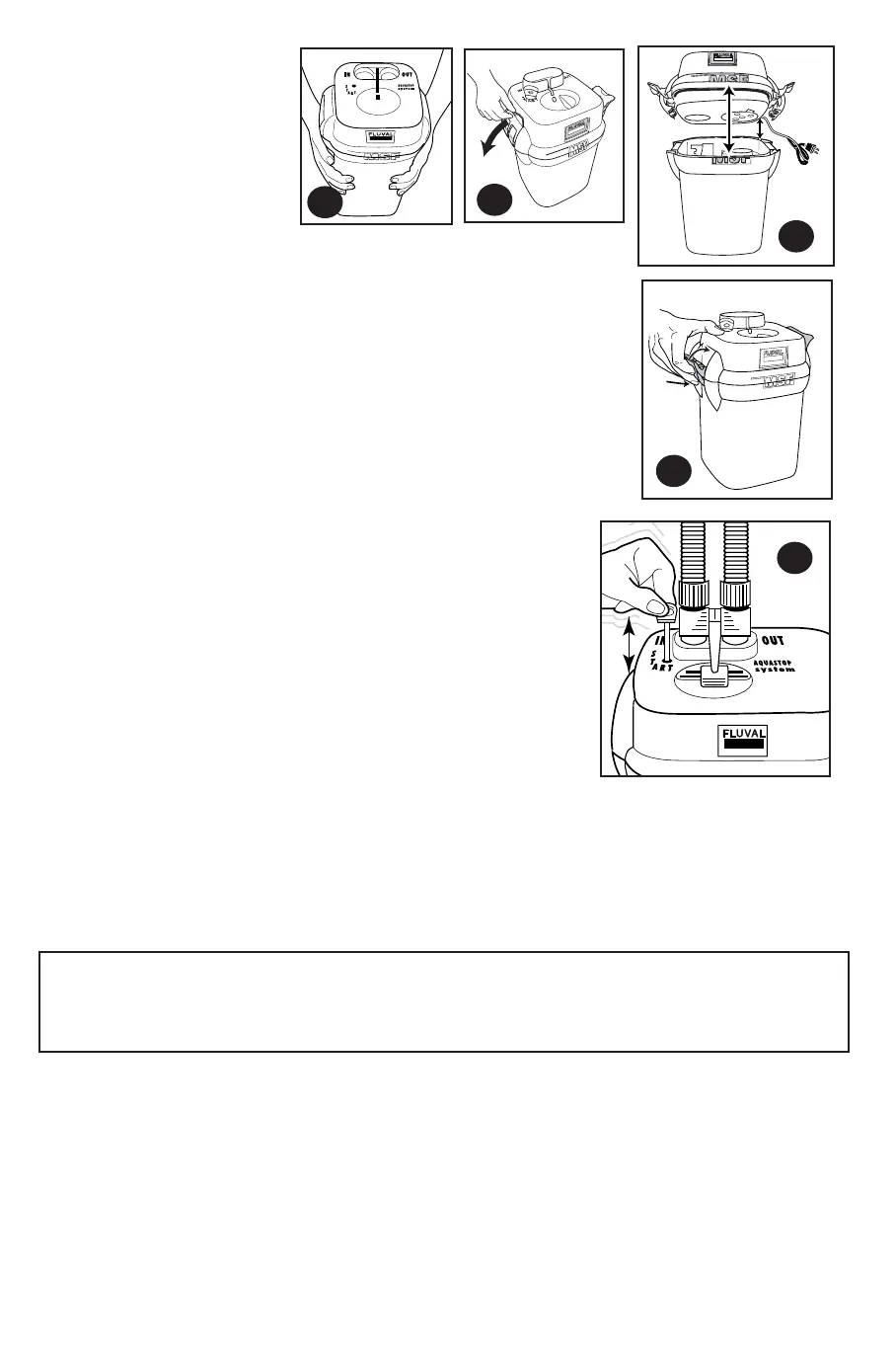 filtre Fluval ne doit pas fonctionner à sec. Brancher au courant électrique un filtre dont la cuve