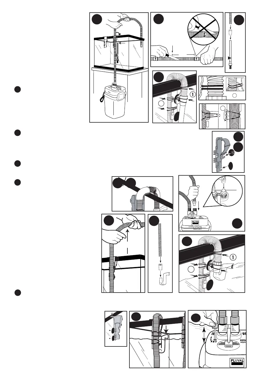 24 Ziehen Sie den flexiblen Schlauch (P) vom Fluval Filter bis an die Stelle am