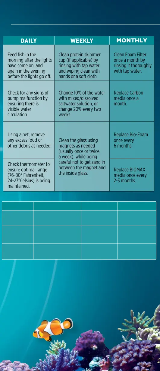 Fluval SEA EVO - CARE & CLEANING; Regular Maintenance Schedule; Media Maintenance and Replacement