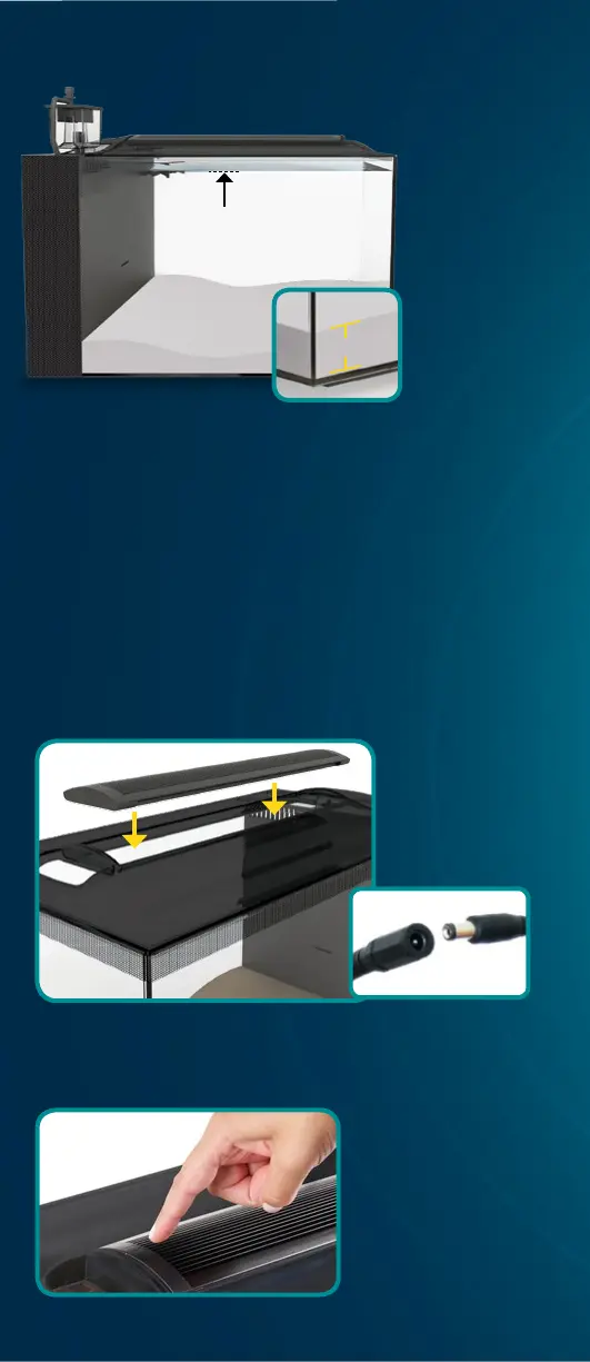 Light unit rests into top channel of aquarium cover. Once light is in