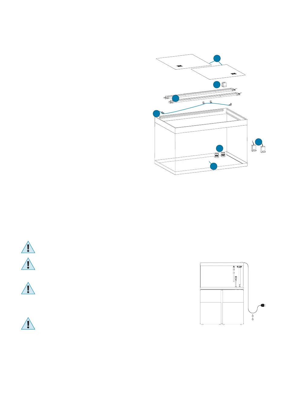 WICHTIG: BAUEN SIE DEN AQUARIENSCHRANK VOLLSTÄNDIG ZUSAMMEN, BEVOR SIE DAS AQUARIUM AUS DER VERPACKUNG NEHMEN.