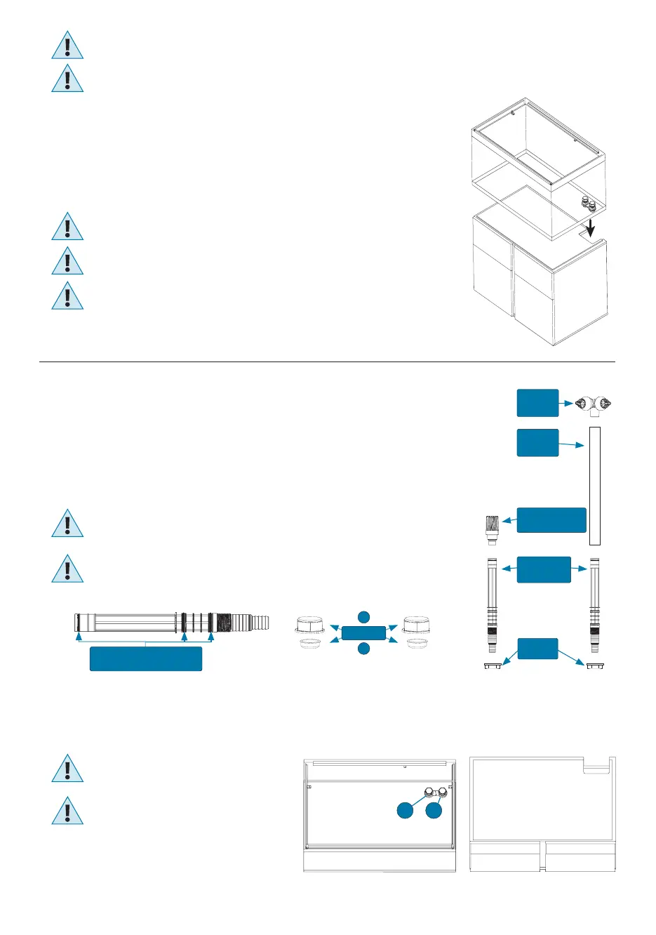 Localiza las dos aberturas del fondo del tanque de vidrio y asegúrate de que las aberturas correspondientes en el armario estén alineadas con ellas. Las dos aberturas en el vidrio