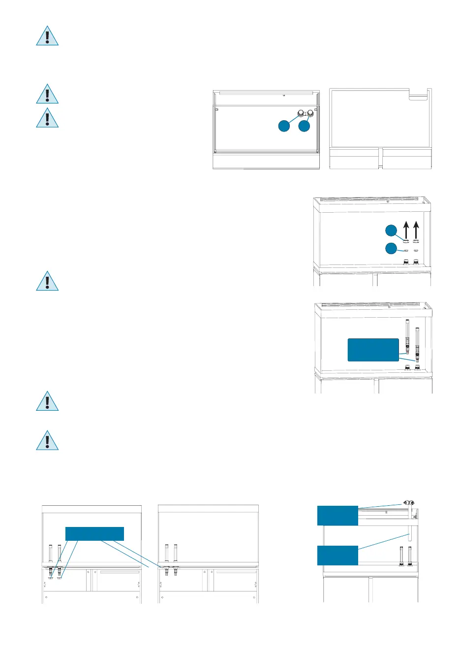 Find de 2 åbninger i glasset i bunden af akvariet og sørg for, at de tilsvarende åbninger i akvarieskabet er på linje med dem. De 2 åbninger i glasset i bunden