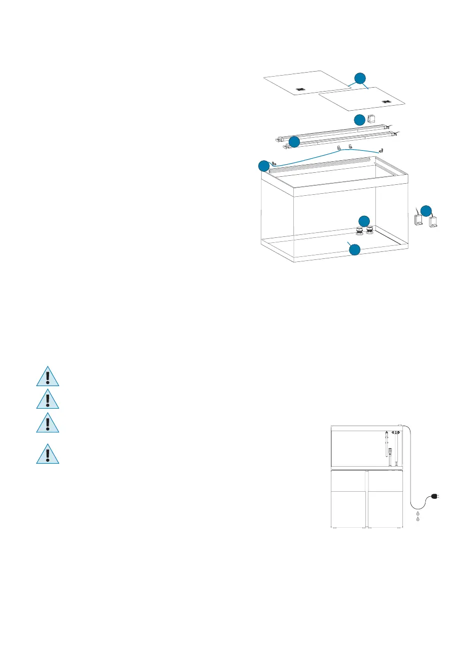 5. LET OP – Schakel altijd alle apparaten in het aquarium uit of trek de stekker eruit voor u uw handen in het water steekt, voor het aanbrengen of