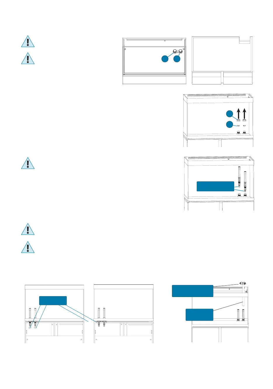 Lokaliseer de 2 openingen in het bodemglas van het aquarium en zorg ervoor dat de corresponderende openingen in de kast daarmee zijn uitgelijnd. De 2 openingen in