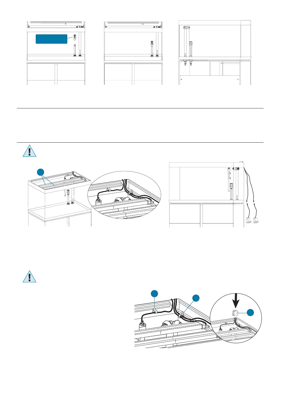 z tyłu akwarium za pomocą krawędziowej prowadnicy przewodów,