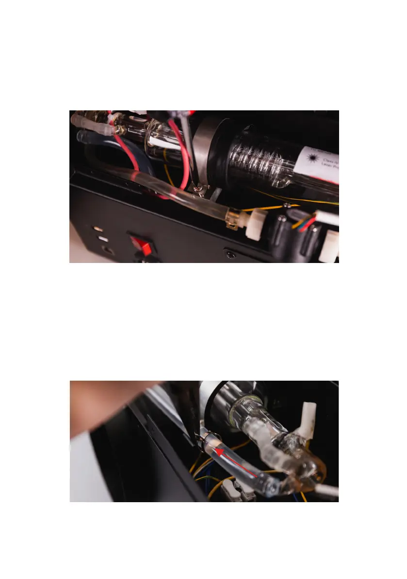 Move the hose clamp away from the laser tube by