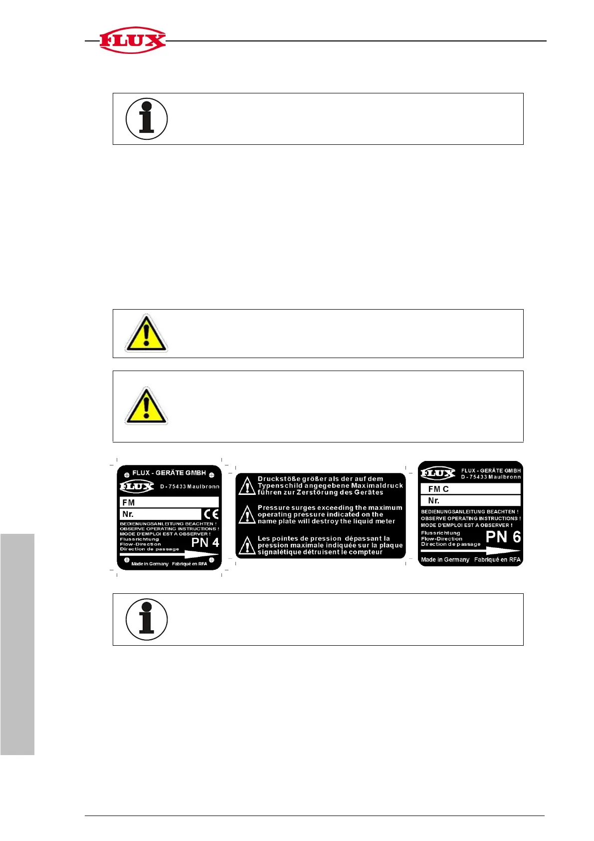Une fois monté, le compteur de débit ne doit pas subir de contraintes mécaniques.