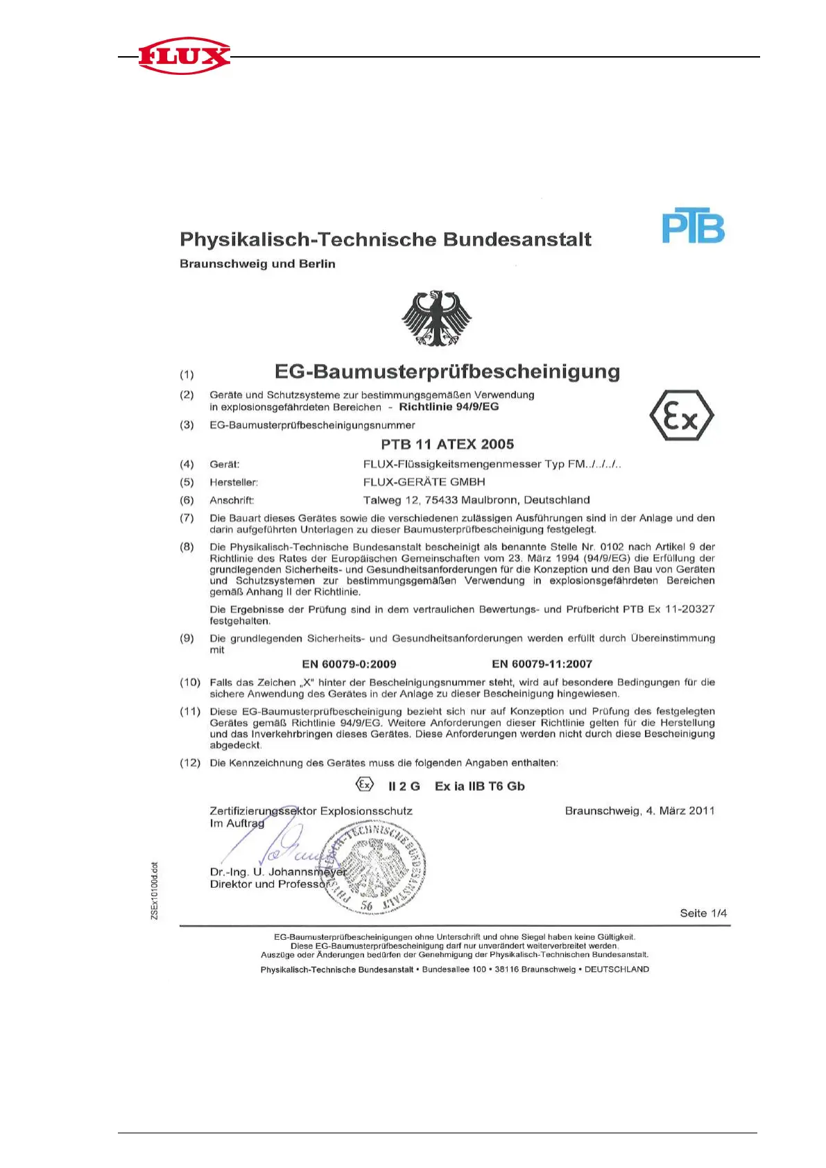 Flux FMC 100 - EC-Baumusterprüfbescheinigung (German Certificate)